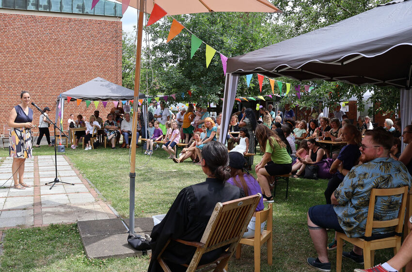 "Gott mag Feste und Gott feiert mit" - davon sind Handpuppe Lucy und Pastorin Rebecca Schoppe überzeugt. Mit ihrer Andacht begann am Sonntag, 29. Juni, das große Sommerfest zum 15-jährigen ...