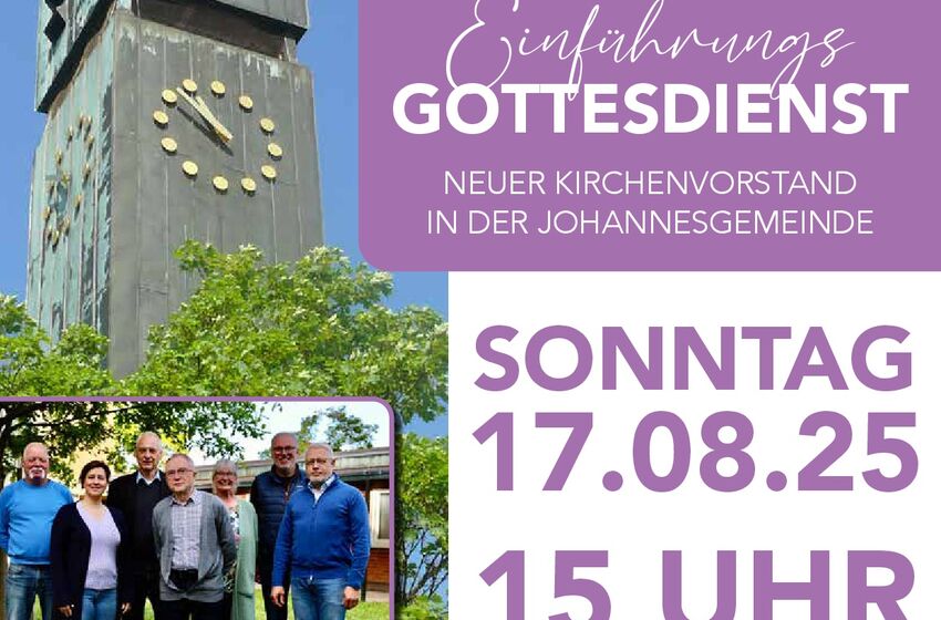 Am 17. August 2025 um 15.00 Uhr halten wir einen Einführungsgottesdienst für unseren neuen Kirchenvorstand ab. Wir freuen uns auf viele Teilnehmer. Im Anschluss an den Gottesdienst sind alle ...